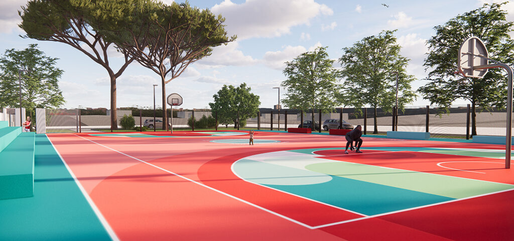 Il progetto elaborato a seguito del confronto con l’amministrazione punta alla valorizzazione del campo di basket all’aperto per metterlo a disposizione della comunità in condizioni di sicurezza e per l’organizzazione di eventi sportivi e non.