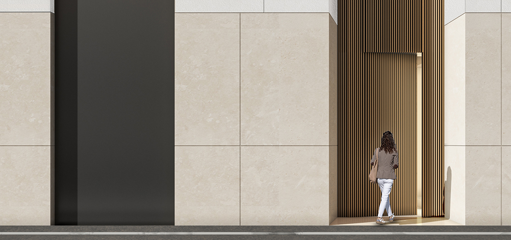 La preesistenza viene demolita a favore di una soluzione a cinque livelli, due interrati e tre fuori terra, che si adattano al perimetro del lotto. Punto focale del progetto è la composizione delle facciate, il disegno dei pieni e dei vuoti, l’utilizzo dei materiali.