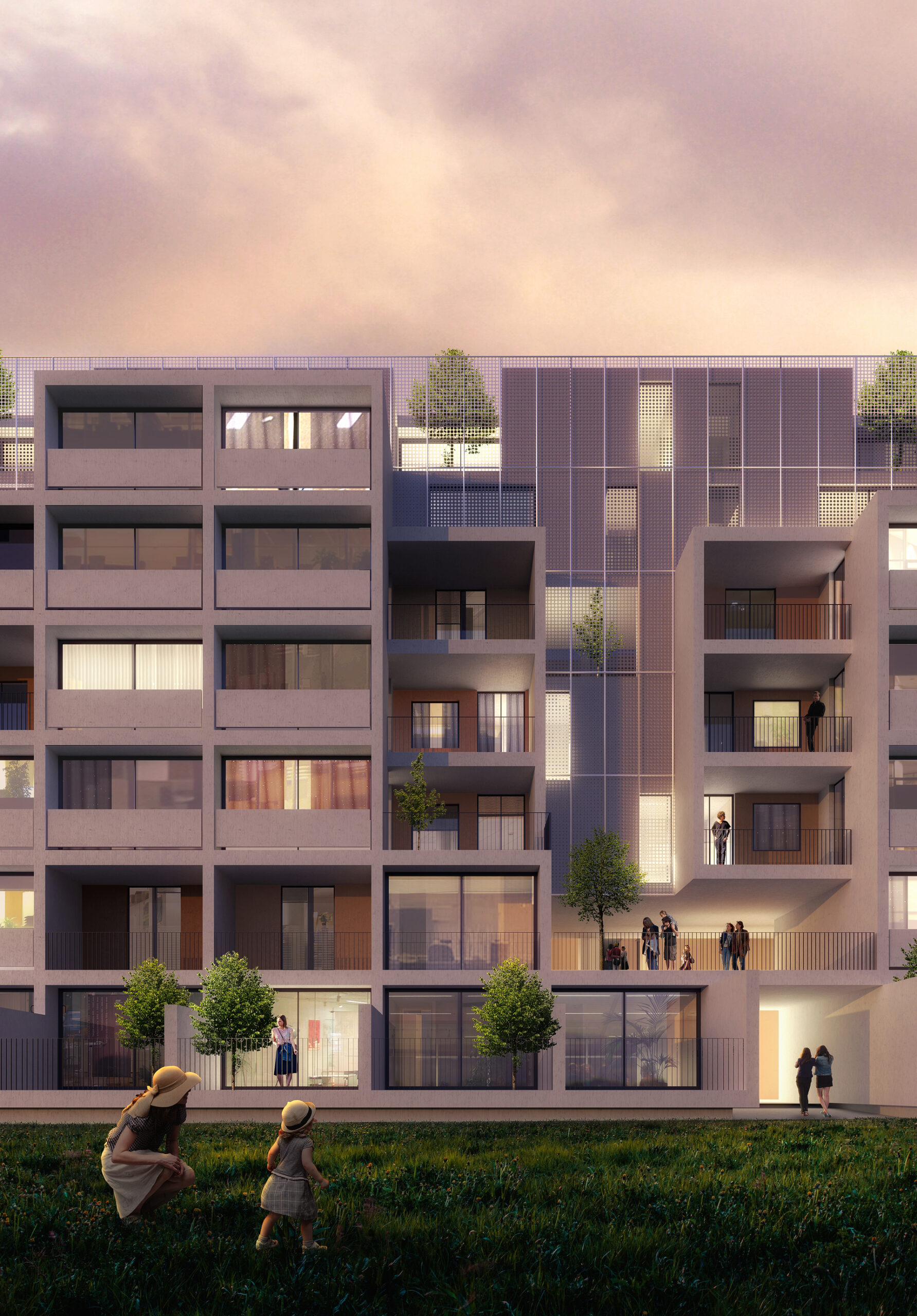 I concetti cardine dai quali prende forma il progetto si possono riassumere in tre macro-interventi: il primo aumenta la permeabilità dell’area attraverso la “fuoriuscita” del piano semi interrato, per aumentarne l’accessibilità e collocare attività commerciali e sociali gestite da terzi a servizio della collettività residente e non residente; il secondo massimizza la superficie residenziale per far fronte alla domanda abitativa del comune di Lecce, motivo che ha portato a concentrarsi nell’ala posta a sud a confine con il parco per effettuare gli interventi più incisivi e innovatori, eliminando la compartimentazione dettata dalla struttura portante e creando una nuova struttura che si innesta nell’esistente definendo nuovi interpiani e nuovi moduli abitativi; il terzo connette il fronte sud con il fronte nord in cui la struttura interna e la pelle esterna vengono rispristinati mantenendo invariata la loro essenza e in alcuni punti la rottura di alcune porzioni di solaio dà vita a spazi aggregativi e abitativi fruibili non solo dai residenti del complesso ma anche dagli esterni, la volontà è quella di creare delle piazze e degli affacci interni opportunamente collegati con le aree a verde esterne.